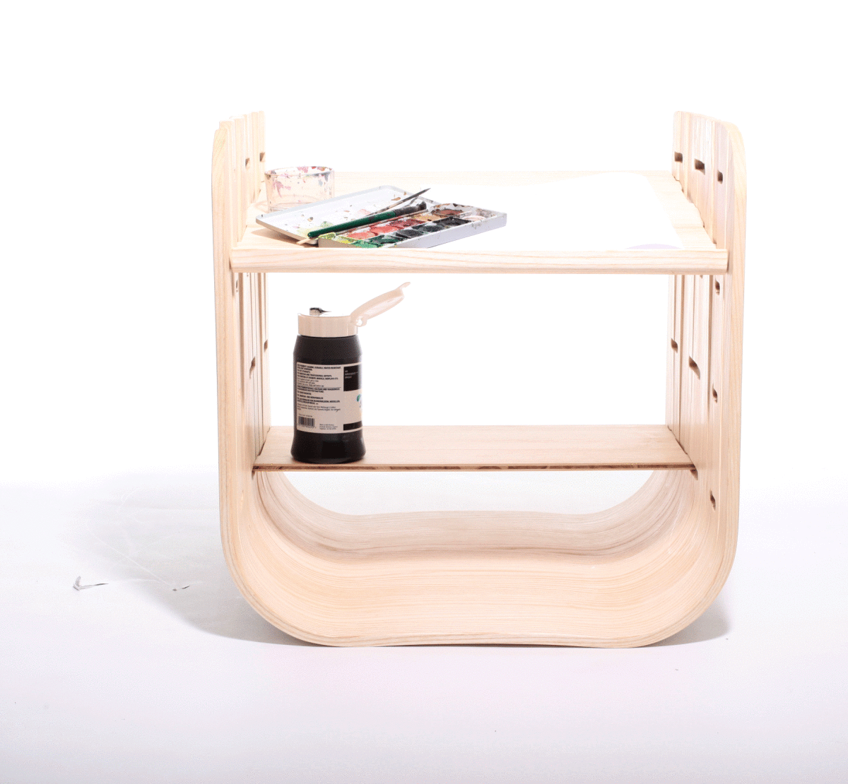 Creativity inspiring play unit / versatile storage, adaptable to the needs of the user. Play, paint, model / toys, books, magazines. For children, through all ages.