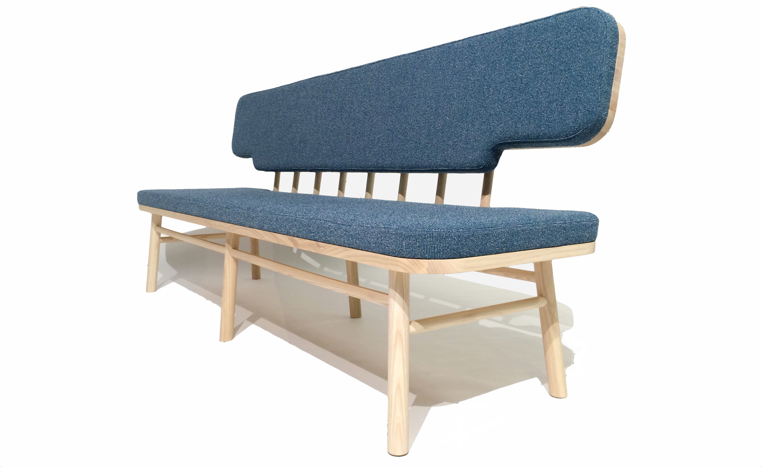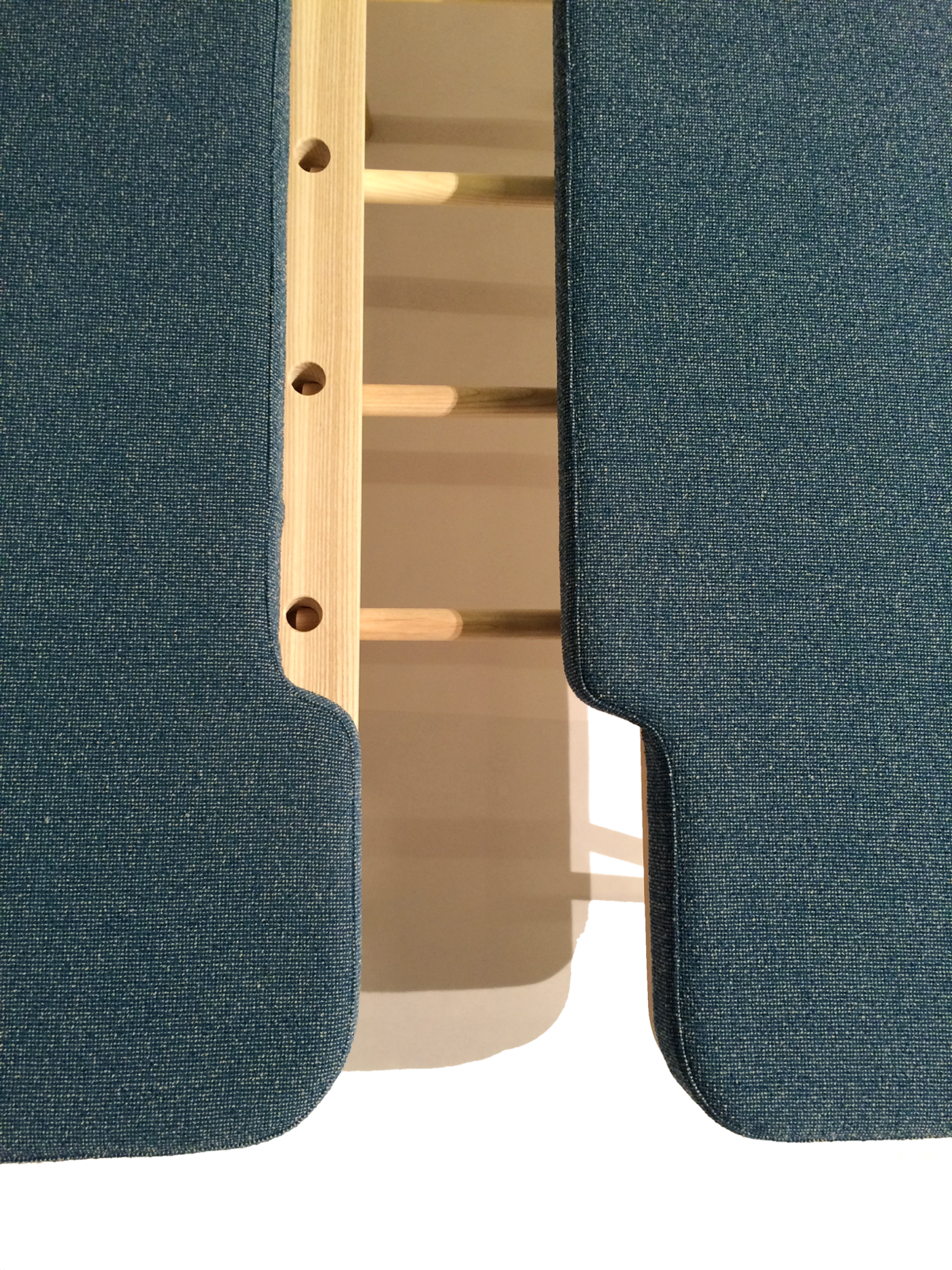 Made from ash, treated with white pigment oil and upholstered by Bogesunds Effect-fabric.